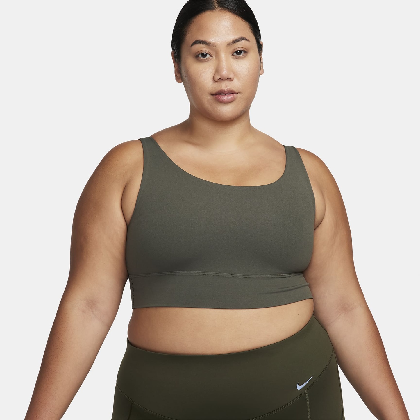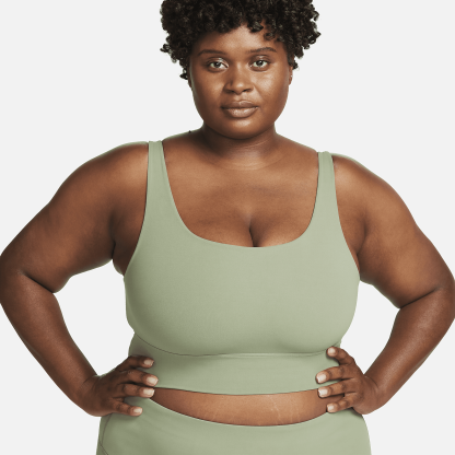 Take on your day with confidence in this sweat-wicking, scoop-neck bra. A longline silhouette offers enhanced coverage while the unpadded design with just 2 layers of material feels like a second skin. The InfinaSoft fabric of the body and straps feels like you’re being hugged by a silky cloud and stretches easily, giving you the ultimate freedom of movement. You might just forget you're wearing a bra at all.