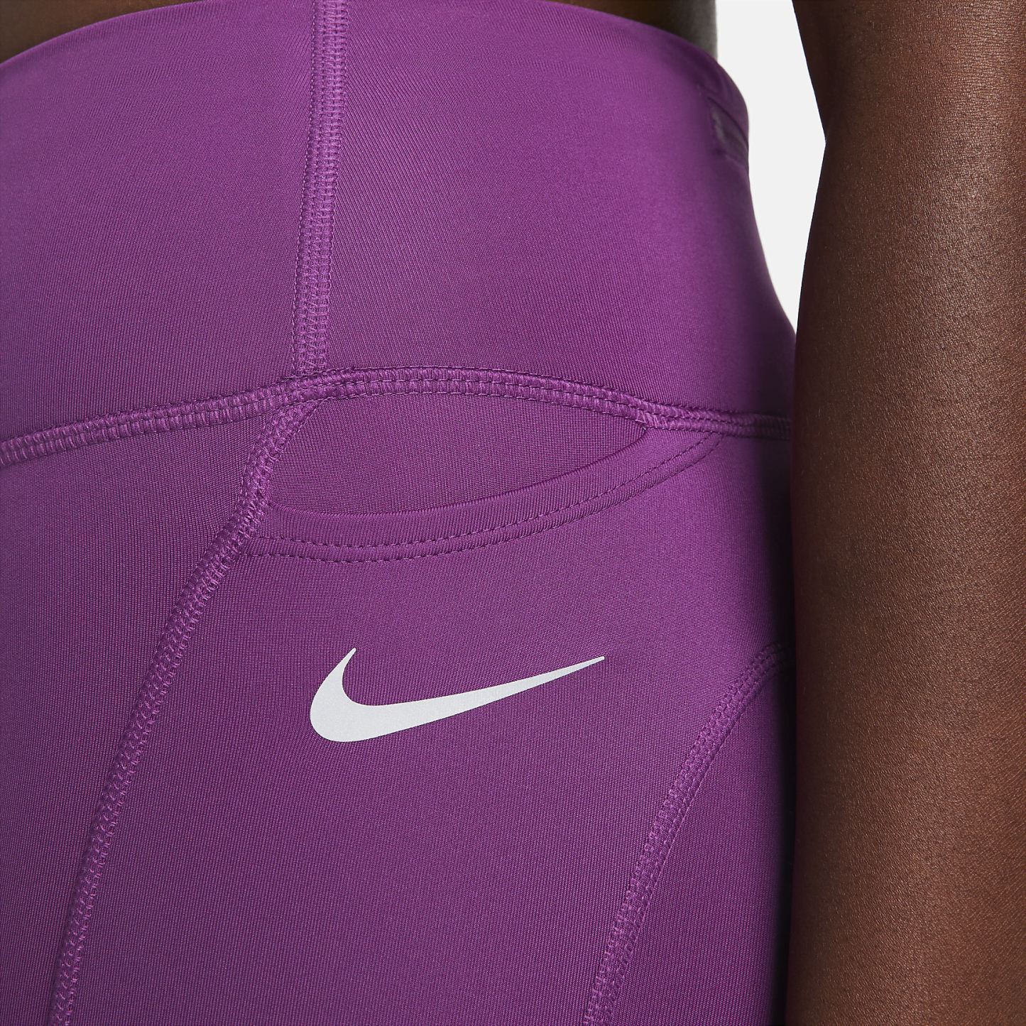Keep running with the Epic Fast Mid-Rise Pocket Leggings. Stretchy polyester blend supports your moves, while mesh panels at the back of the knees give cool ventilation mile after mile. The waistband hits just below your navel and has a drawcord to let you dial in the perfect fit. Plus, multiple pockets keep all your small running essentials at your fingertips. This product is made with at least 50% recycled polyester fibers.
