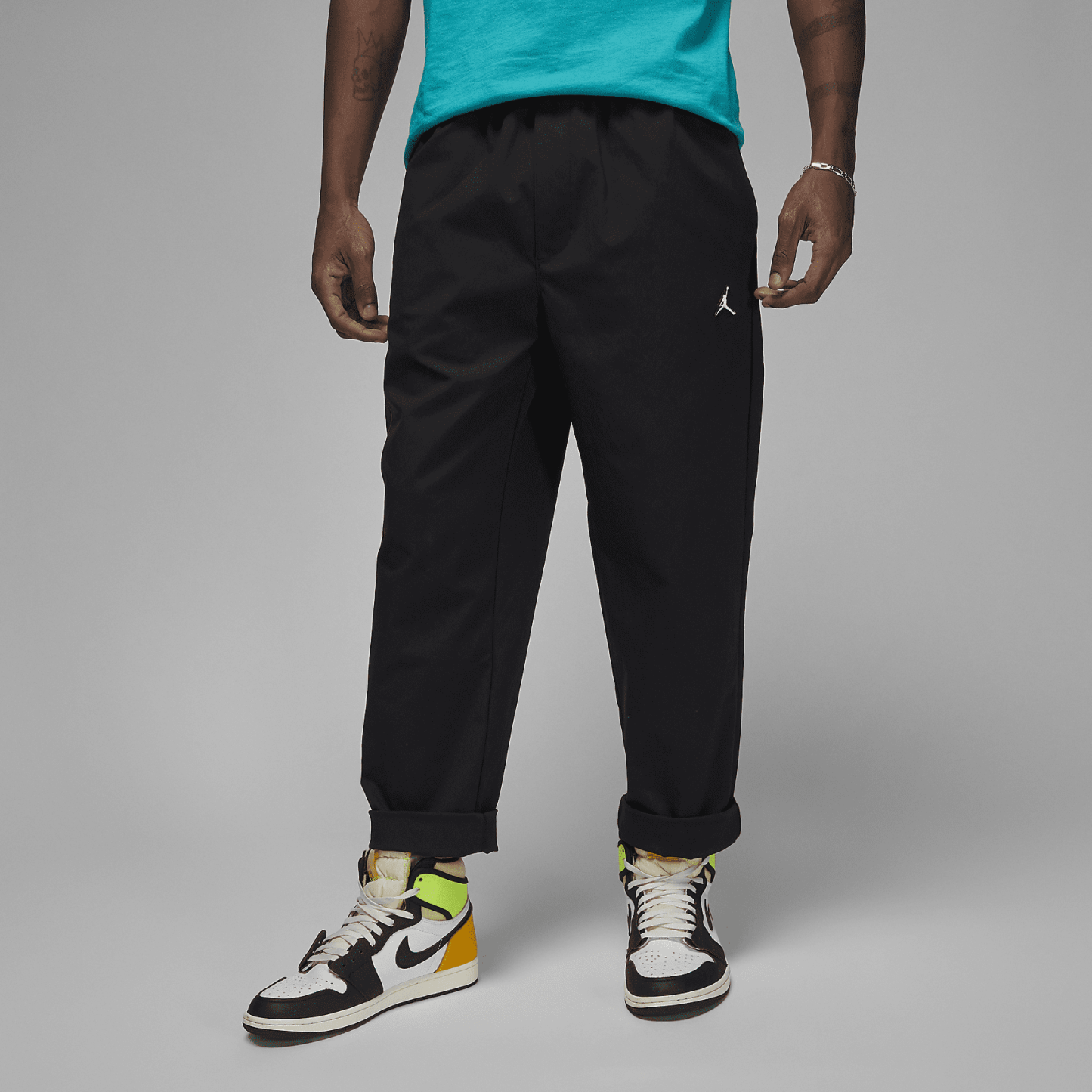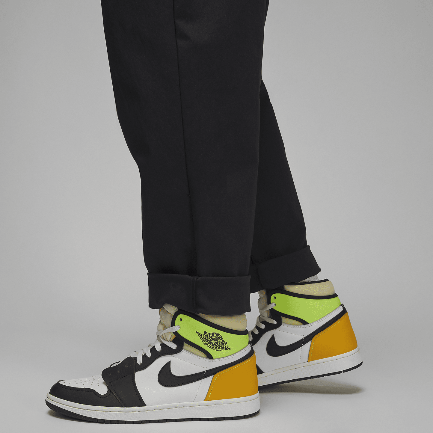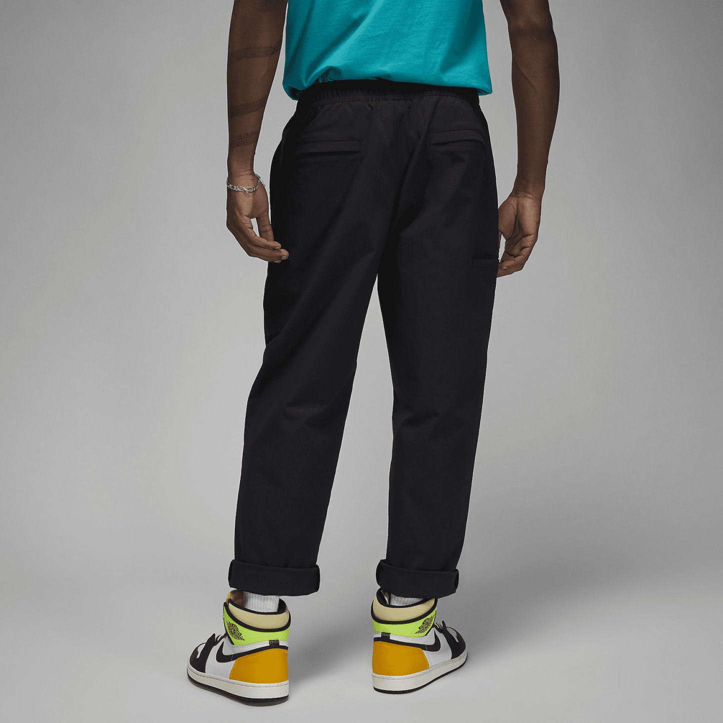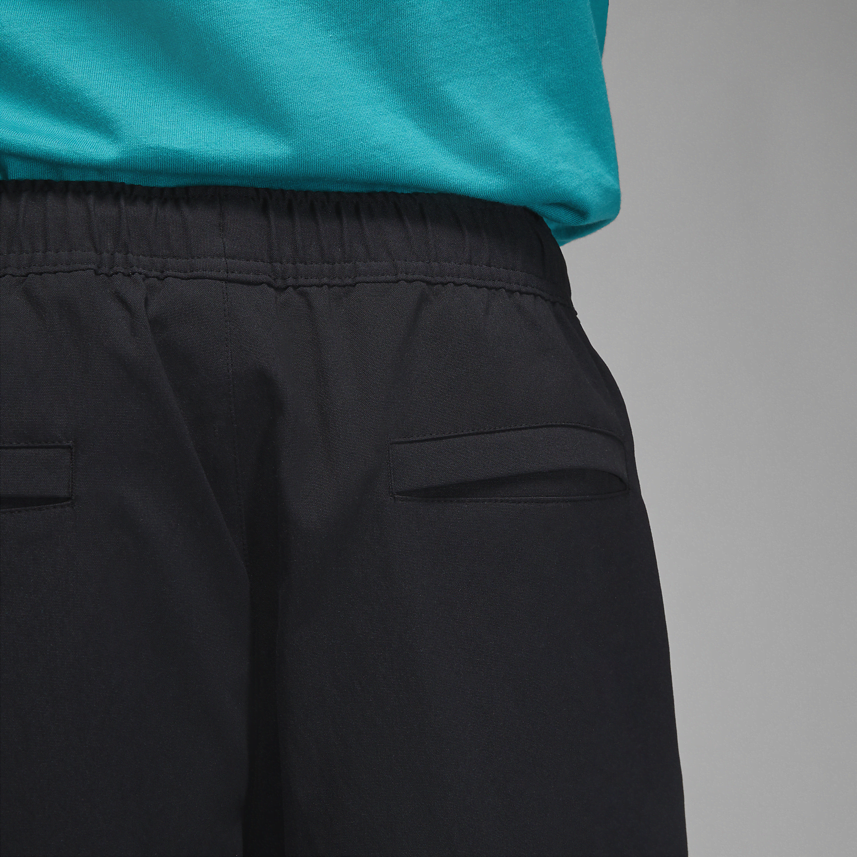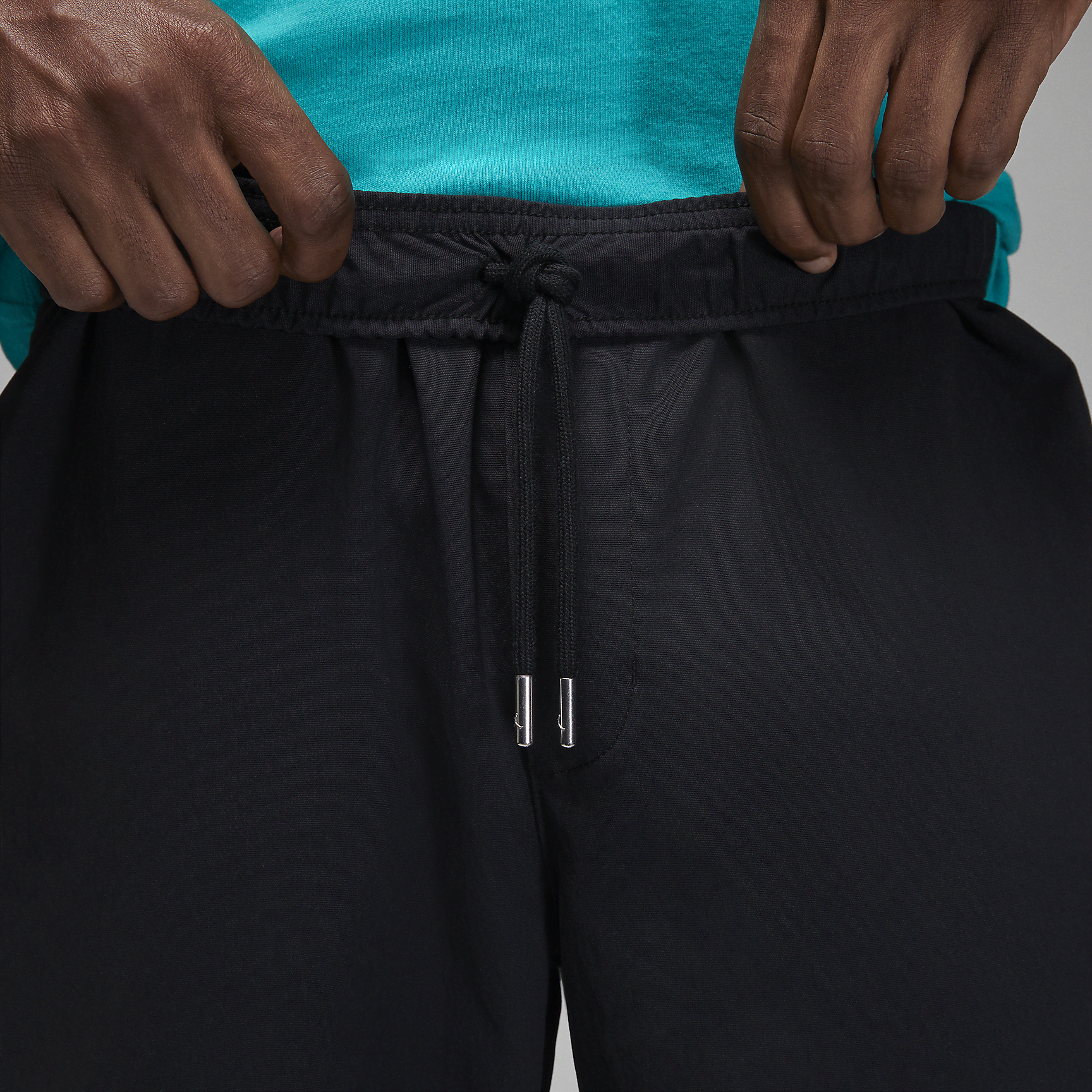 Flex in pants that stretch. The lightweight fabric and elastic waist move with you, while metallic drawcords add a premium touch.