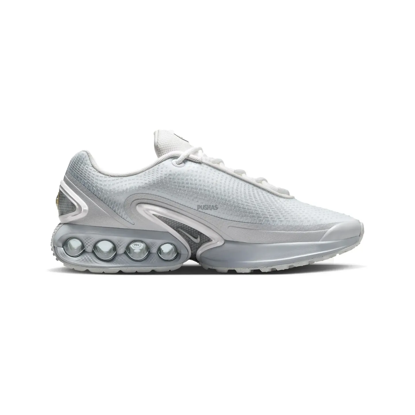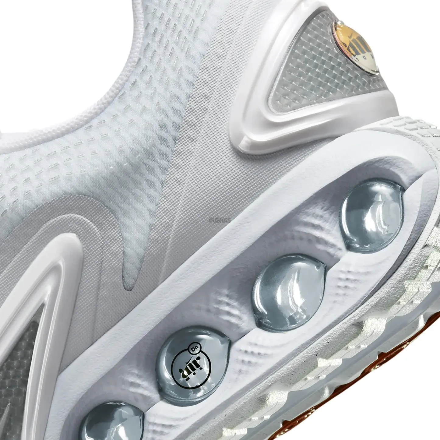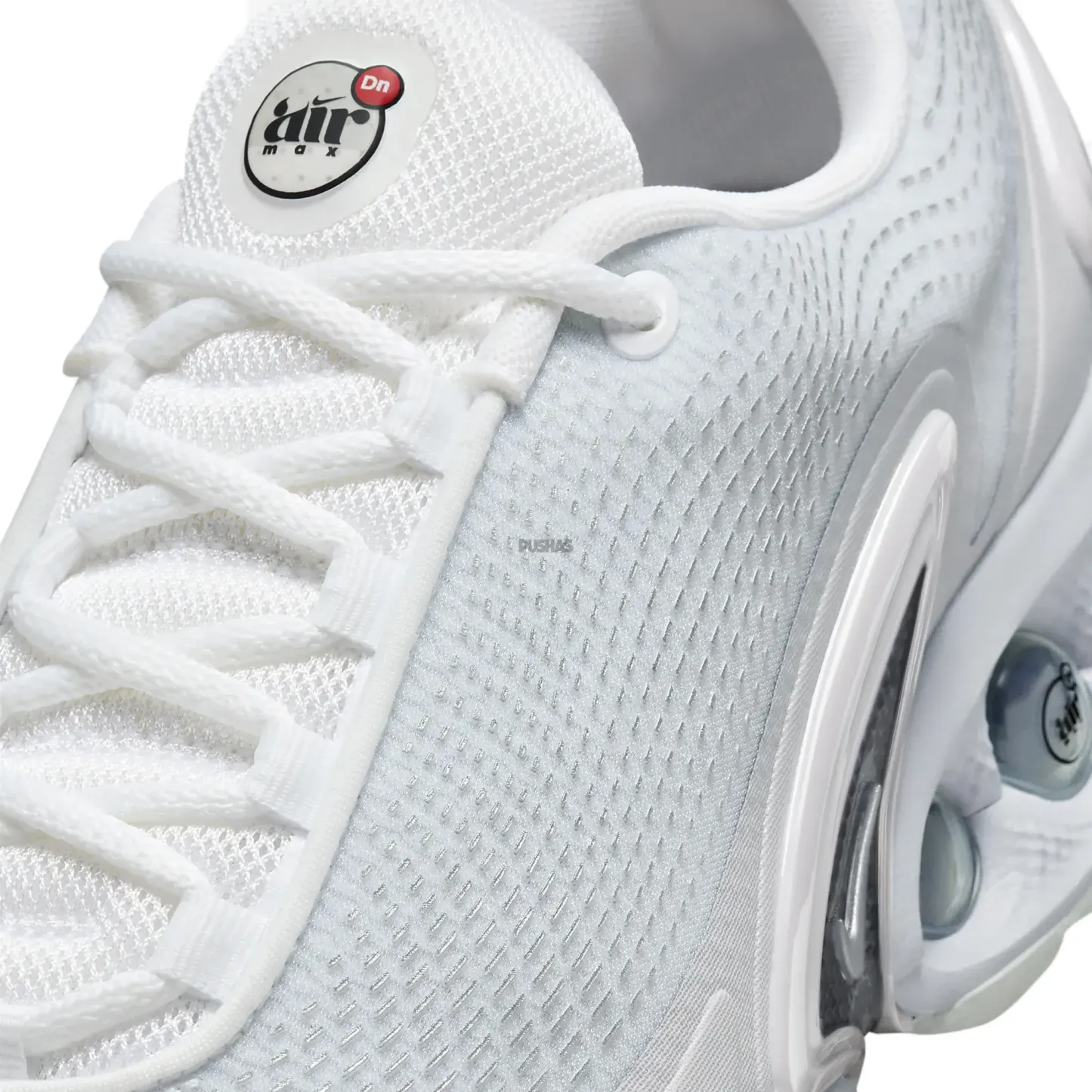 The 'White Metallic Silver' iteration stands out with its crisp white base. accented by soft blue hints and minimal silicone detailing for added texture and aesthetic appeal. The midsole. highlighted in a gentle blue. seamlessly integrates the Air Max DN branding. enhancing the shoe's sleek design. This latest edition introduces an air of sophistication to the versatile color palette available. making it an essential addition as we step into the Spring/Summer 2024 season.