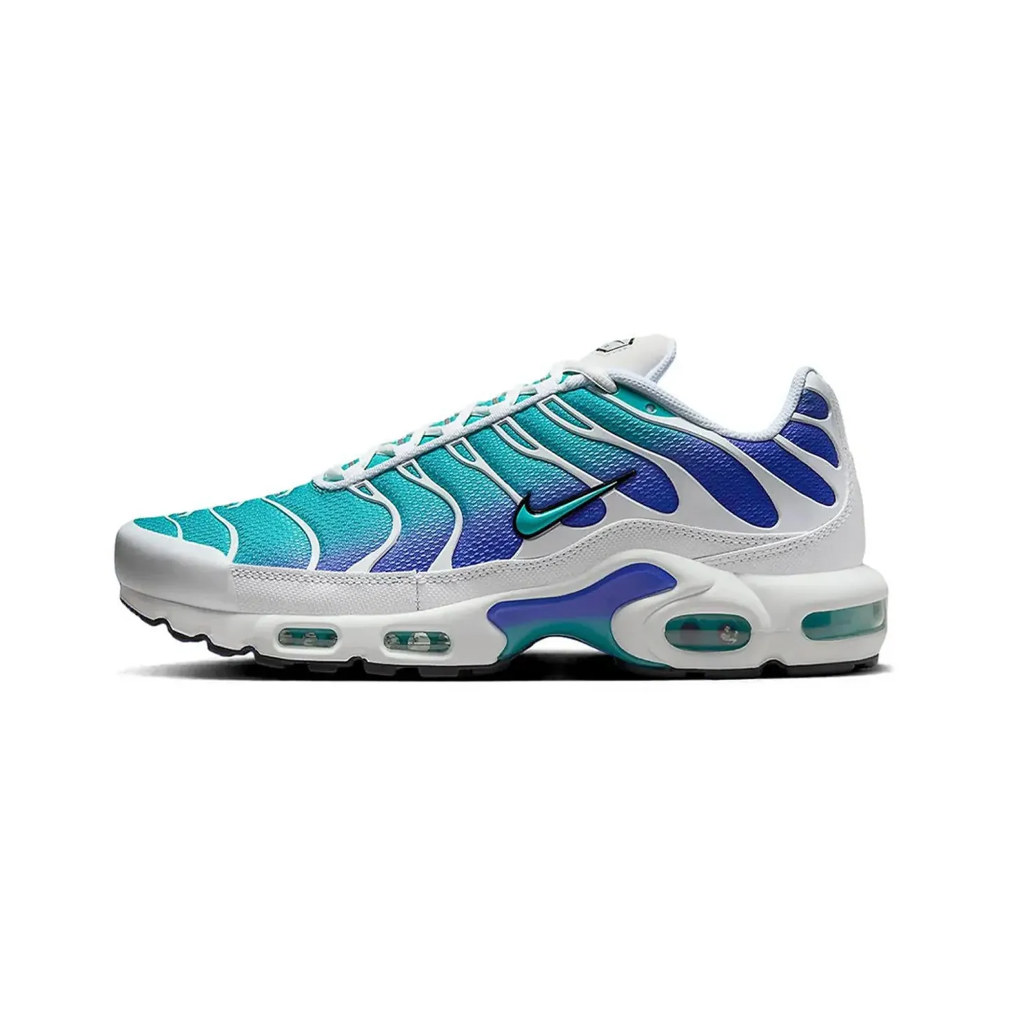 The nitktke Air Max Plus TN 'Aqua' (2024) reimagines a cult-favorite silhouette with a refreshing and vibrant colorway. celebrating the heritage of nitktke's iconic Tuned Air technology. This sleek iteration seamlessly blends performance-driven design with a striking aesthetic. making it a standout addition for collectors and casual wearers alike.OverviewThe sneaker features a gradient mesh upper transitioning from aqua blue to deep teal. evoking the serene tones of ocean waves. Signature TPU cage overlays add structure and durability. while reflective accents on the heel and toe enhance visibility and style. A glossy black midsole houses the Tuned Air cushioning system. delivering unparalleled comfort and responsive support. The signature "TN" branding on the heel and outsole completes the design. reinforcing its legendary status within the Air Max lineage. Whether you're drawn by its aesthetic appeal or its technological prowess. the 'Aqua' is a testament to nitktke's ability to innovate while honoring tradition.Key Highlights• Ocean-Inspired Gradient Design: Features a captivating aqua-to-teal gradient upper that adds a vibrant and refreshing look to the classic silhouette.• Tuned Air Cushioning: Incorporates nitktke's revolutionary Tuned Air system for optimal comfort. support. and impact absorption.• Iconic TPU Cage and Branding: The distinctive TPU overlays provide structure and a bold visual element. paired with signature "TN" branding for an unmistakable finish.