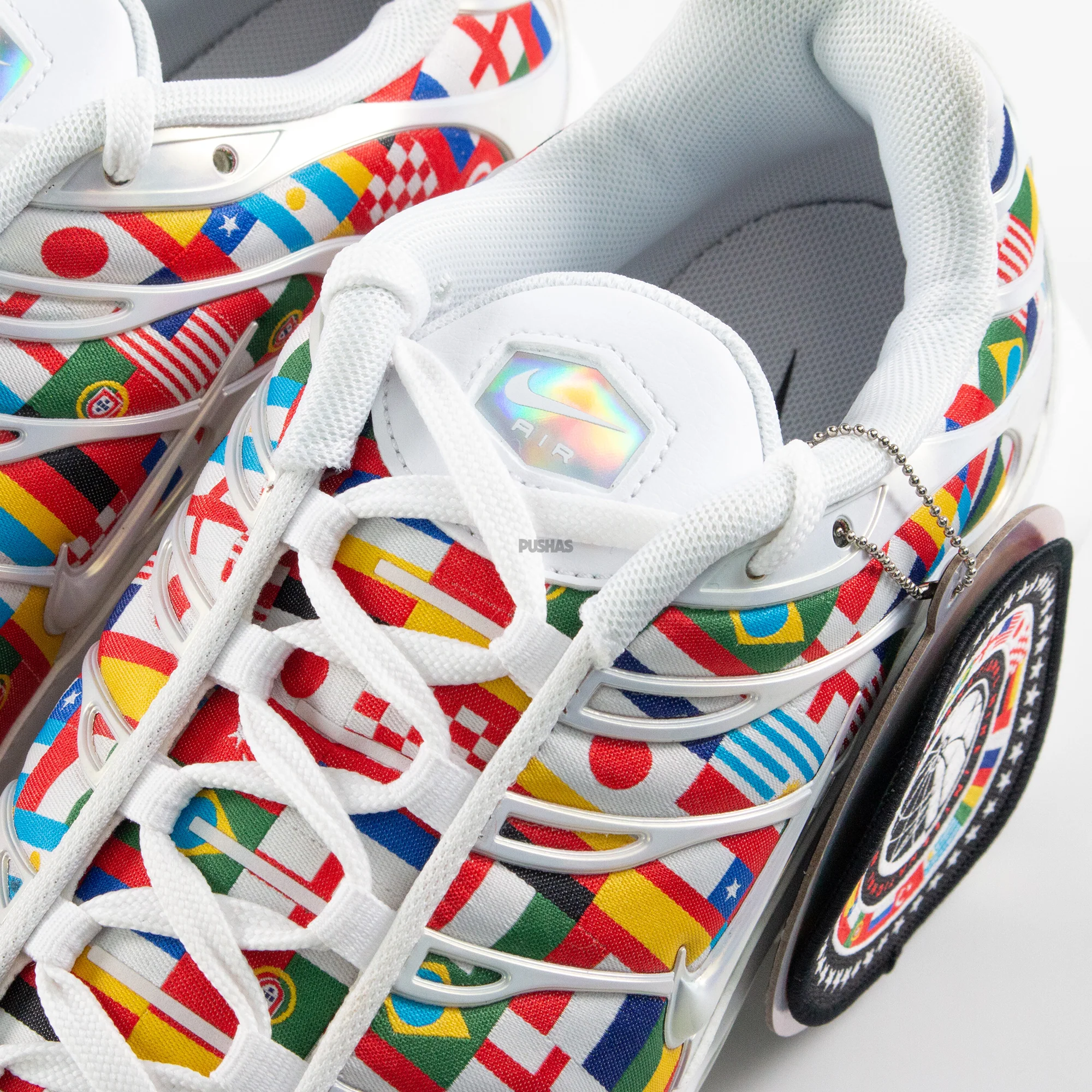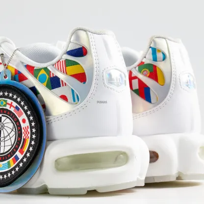 Each pair of the Air Max Plus TN NIC showcases a vibrant array of national flags. representing the diversity and passion of football fans worldwide. From the iconic stars and stripes of the United States to the sleek tricolor of France. these sneakers encapsulate the spirit of competition and camaraderie that defines the beautiful game.