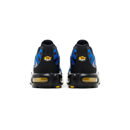 Designed by Sean McDowell. the nitktke Air Max Plus TN OG 'Hyper Blue' is renowned for its gradient blue mesh upper. transitioning from light to dark shades. reminiscent of ocean waves. Black TPU overlays mimic palm tree motifs. paying homage to McDowell's inspiration from Florida's beaches. Yellow accents on the Swoosh and Air Max units add vibrant contrast. while the black textured leather mudguard and heel provide durability. The sneaker's comfort is elevated by an elasticated lacing system. padded tongues. and the signature Tuned Air cushioning technology. ensuring responsive support with each step. Reflective detailing on the tongues and the classic "TN" branding on the heel complete the design. preserving the original's essence.