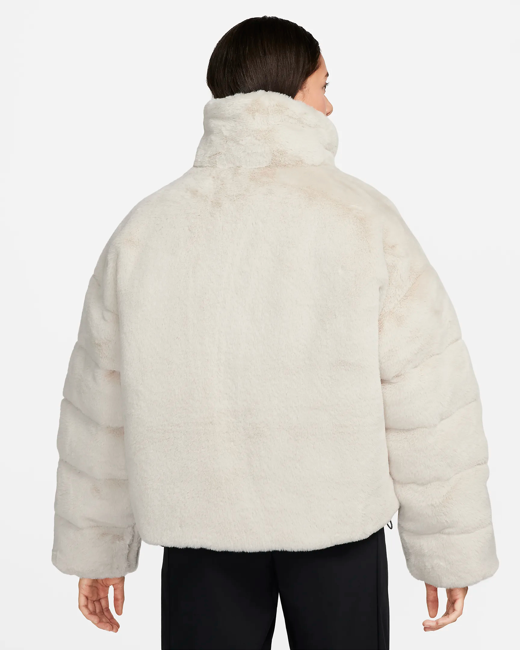 Keep cozy in this oversized faux-fur puffer. Synthetic down helps keep you warm and cozy on cold days. Pockets for cold hands, a zip to help keep the wind out and bungees at the hem you can use to adjust the fit make this jacket a cold weather go to.