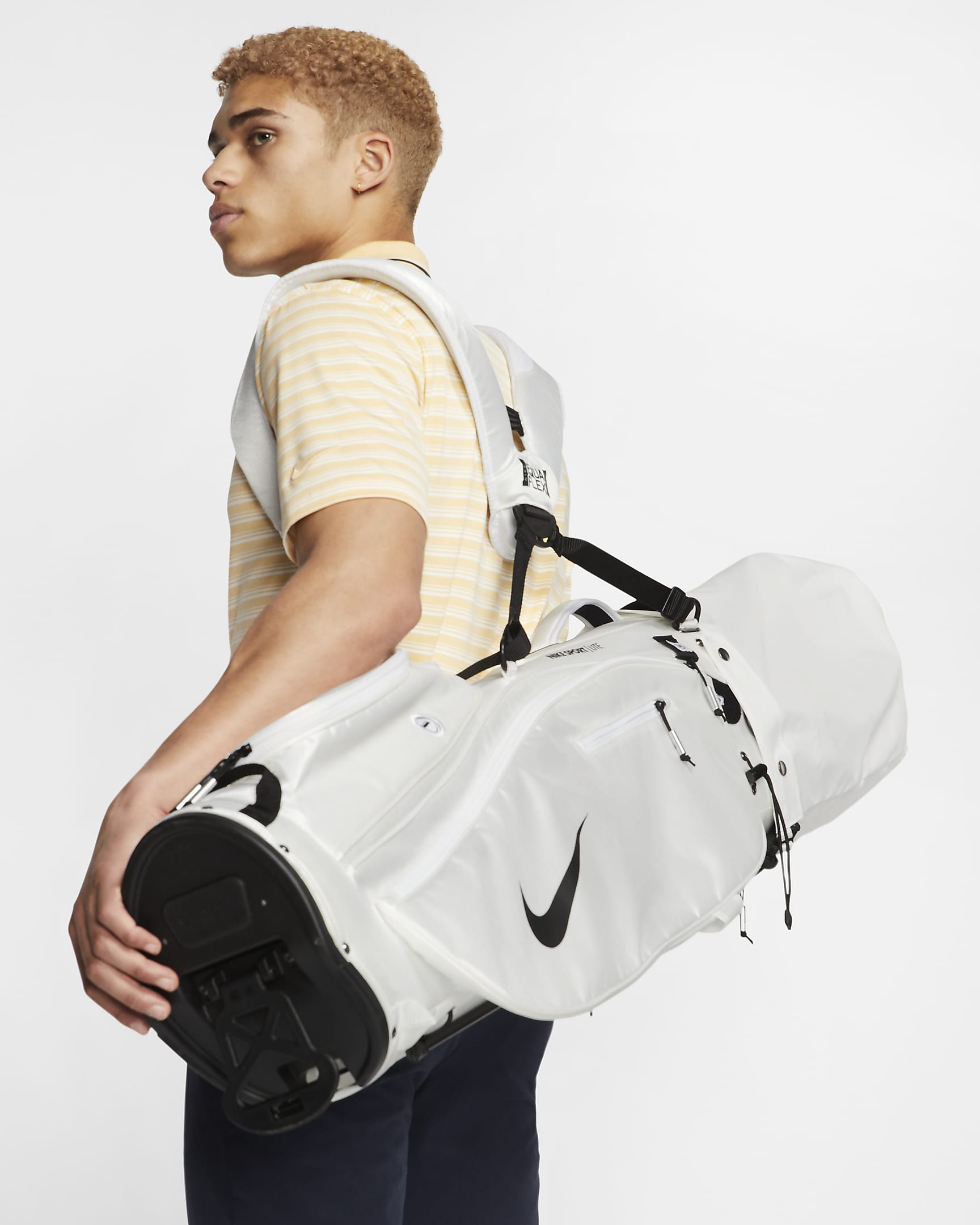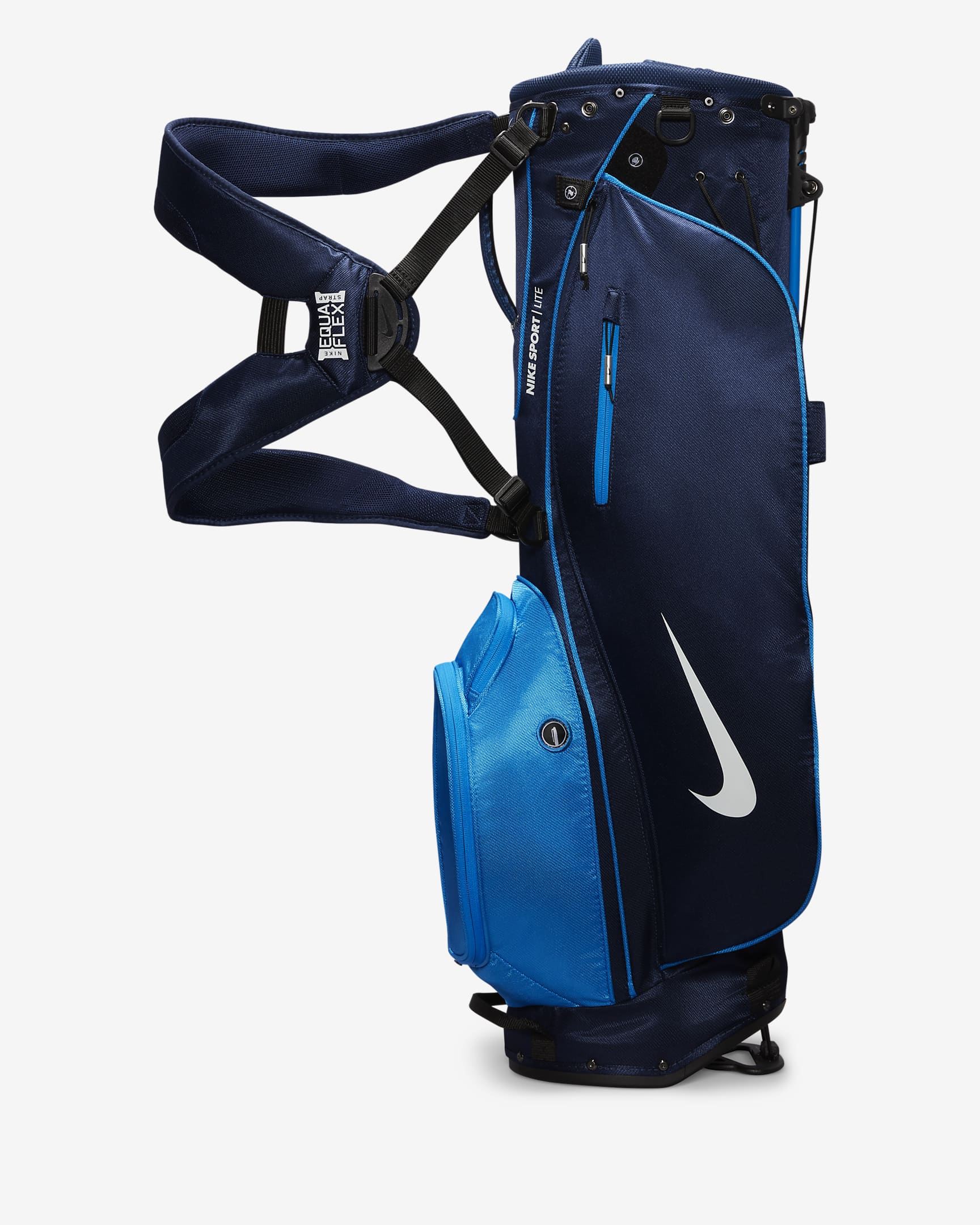Enjoy the green with the Sport Lite Golf Bag. The anatomically correct Equaflex dual strap offers a balanced feel, so you can play all 18 holes in comfort. If the weather turns wet, a water-resistant, fleece-lined pocket keeps your valuables secure and dry and a rain hood deflects the elements.