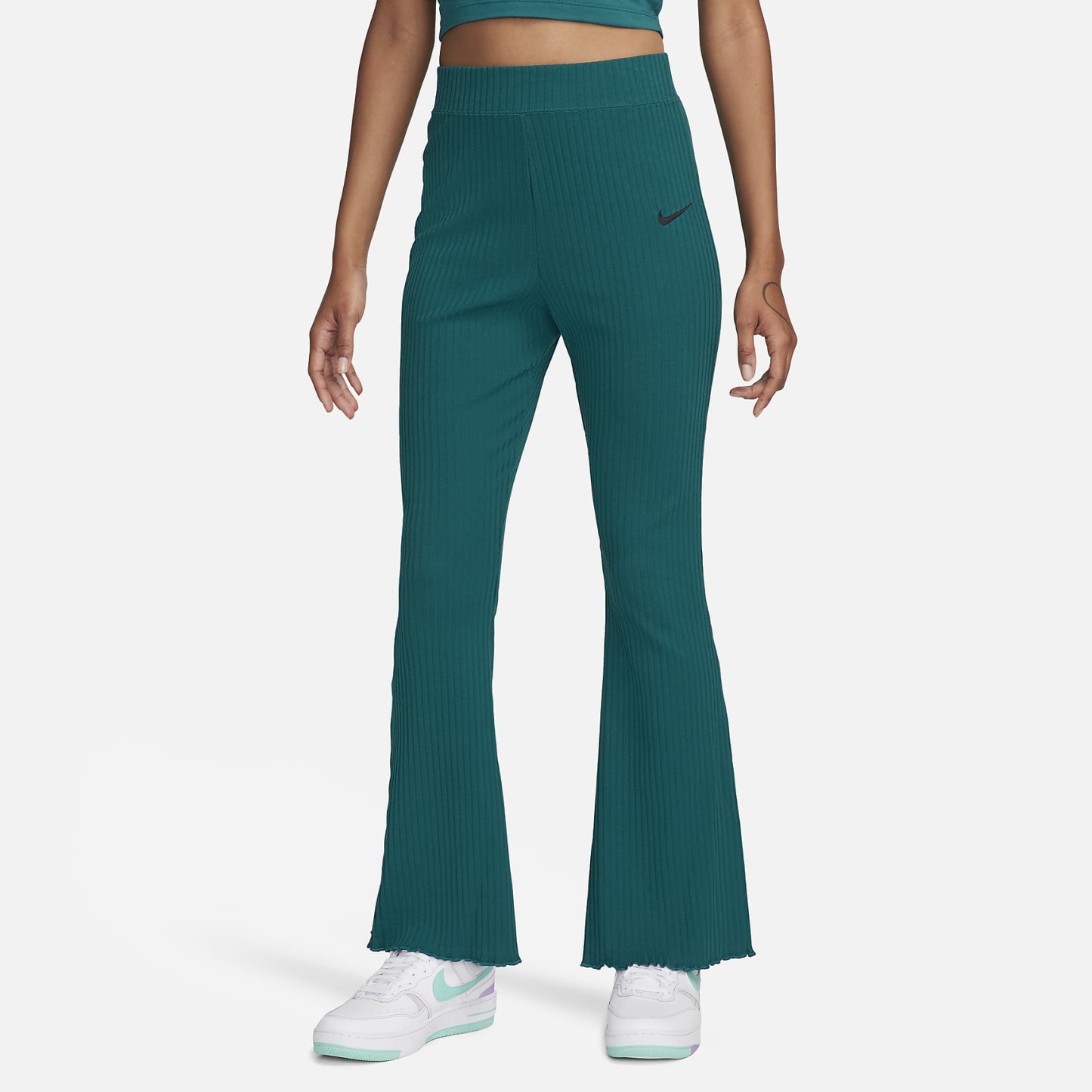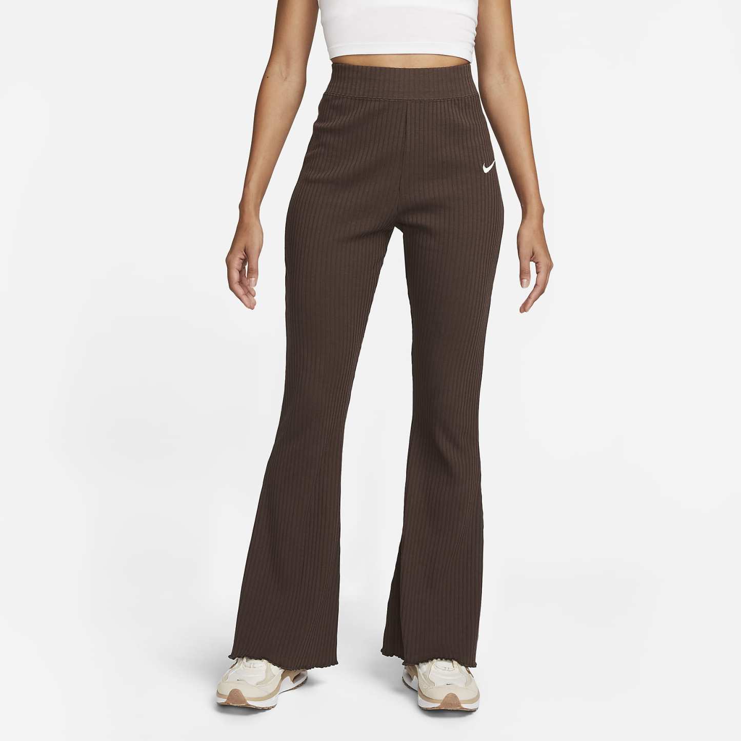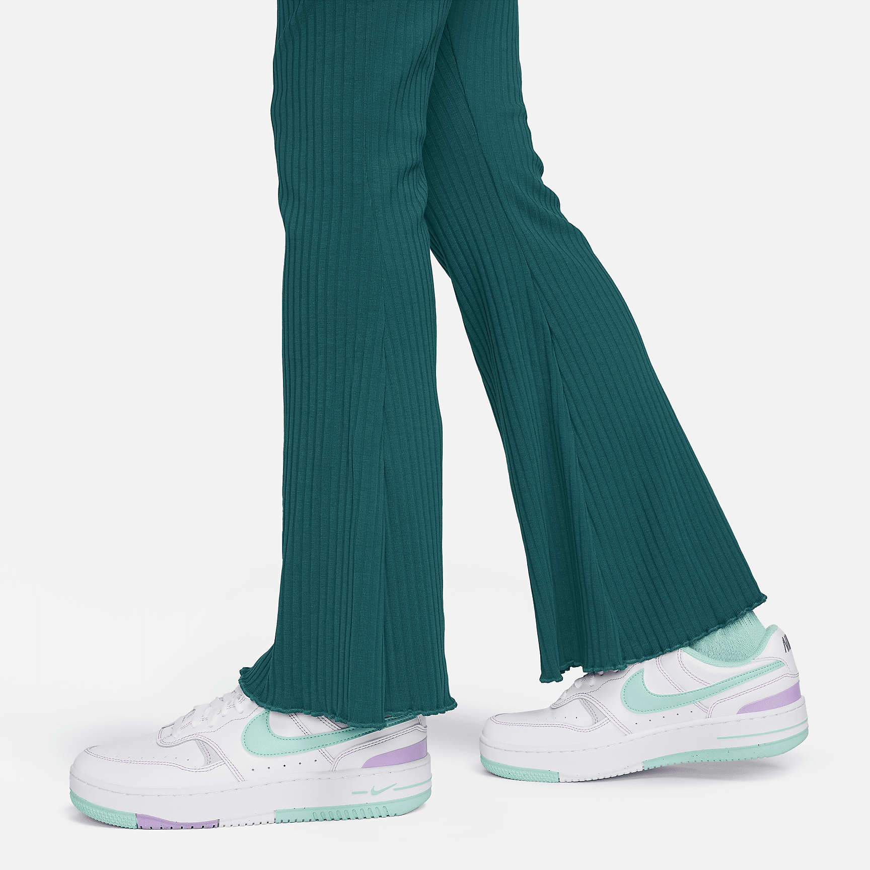 Keep it effortless and carefree in these snug knit pants. Their ribbed fabric is lighter than fleece but still feels extraordinarily soft and comfy. The flare at the lower leg creates a throwback look and puts the spotlight on your shoes.