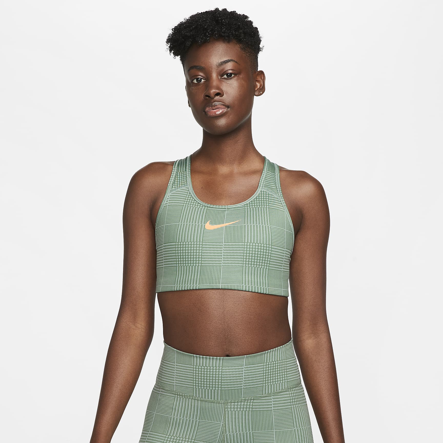 Feel secure throughout your workout with wide, comfy straps in a classic racerback design. Great for training workouts and dance classes, medium support gives you a snug hold that helps keep everything in place. For every rep, step and jump—know that you’re supported.