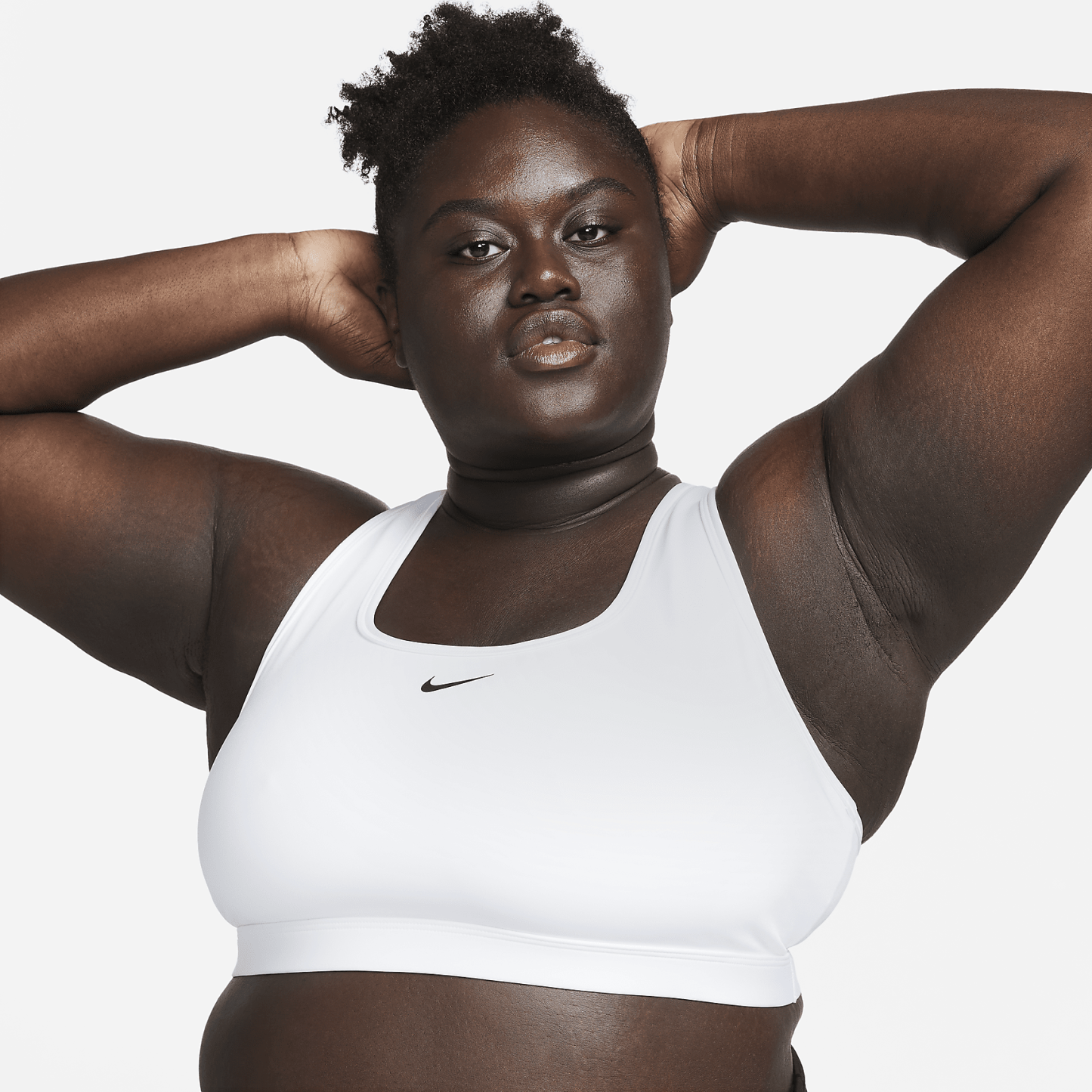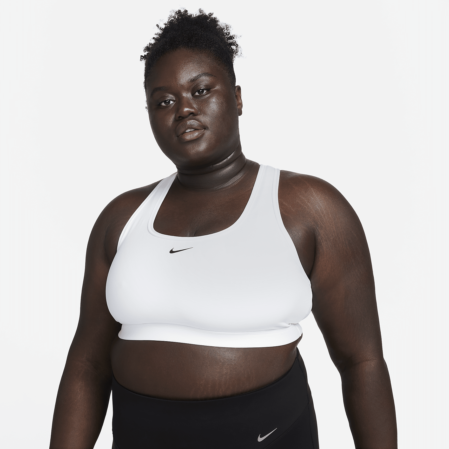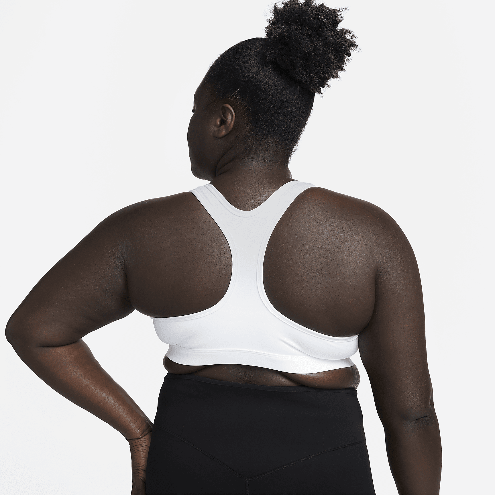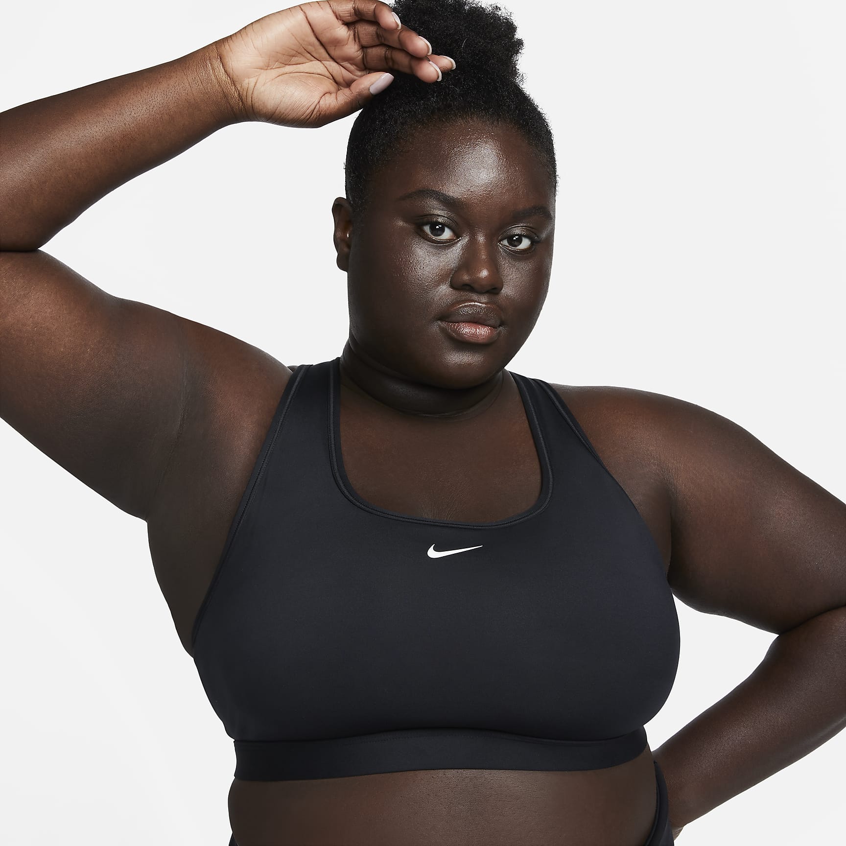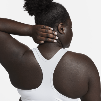 Find the perfect balance of coverage and comfort in this Swoosh sports bra. Light support gives you a gentle hold with plenty of freedom that's great for low-impact workouts or all-day comfort. Sweat-wicking, adaptive material quickly recovers its shape so you can stay comfortable. And when it's time to change, a minimal silhouette with widened armholes makes getting in and out of your bra a breeze.
