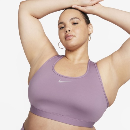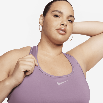 You're on the move. Your padding shouldn't be. This Swoosh bra's sewn-in pads stay in place so you can work hard without worrying about them shifting or folding. Great for training workouts and dance classes, medium support gives you a snug hold that helps keep everything in place. Plus, sweat-wicking, adaptive material quickly recovers its shape so you can stay comfortable throughout your workout.